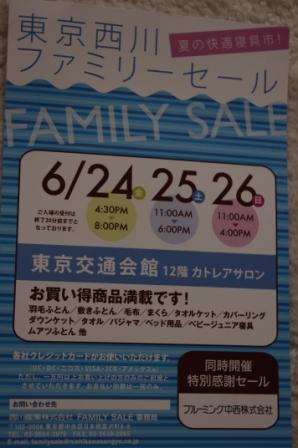 さて、今年最初のバーバリー関係のセールは東京西川のファミリーセールです。