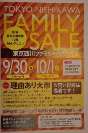 2011年9月30日(金)、東京西川のファミリーセールに行ってきました。